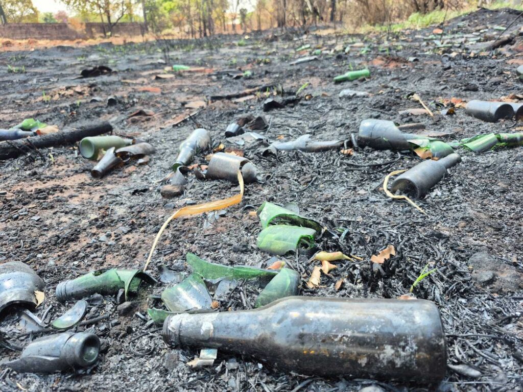 “As garrafas são jogadas normalmente na área e aparecem depois da queima. Por ser um local de trânsito intenso, os motoristas que passam pelo local jogam lixo no terreno”, disse.